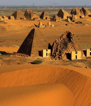 Meroe is an ancient city on the east bank of the River Nile about 200 km (125 miles) northeast of the capital Khartoum. It was the capital of the Kush dynasty that ruled from the early 6th century B.C.
